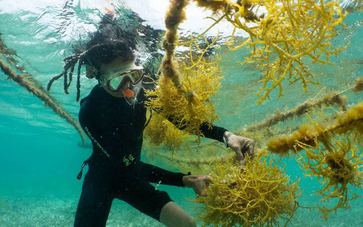 Belize’s fisheries, like so many around the world, are in decline. The cumulative impacts of climate change, coastal development and unsustainable fishing practices threatens the viability of the fisheries industry and the livelihoods of people who depend on it. Fishers are finding it harder to secure stable incomes, resulting in increased fishing pressure, and thus, further aggravating the situation. The Nature Conservancy has been working closely with the Placencia Producers Cooperative Society Limited (PPCSL), a fishing cooperative, in piloting sustainable seaweed farming that employs fishers and women in the community. Sustainable seaweed farming has the potential of being a part of the solution for fishers and fish alike. Belizean fishers have traditionally harvested seaweed while fishing as supplemental income to the traditional catch of lobster, conch and finfish. In addition to providing additional income for fishers, sustainable seaweed farms provide habitat for coral, conch and lobster recruitment and may promote replenishment and restoration. Through an agreement with the Government of Belize, seaweed farms are set aside as no-fishing (no-take) areas with the exception of harvesting seaweed allowing for protection of nursery sites for conch and lobster. The scheme has proven to have the potential for scaling up, providing sustainable livelihoods while also aiding in restoring commercially important species. This model could protect biodiversity, promotes food security and diminishes climate vulnerability of fishing communities.